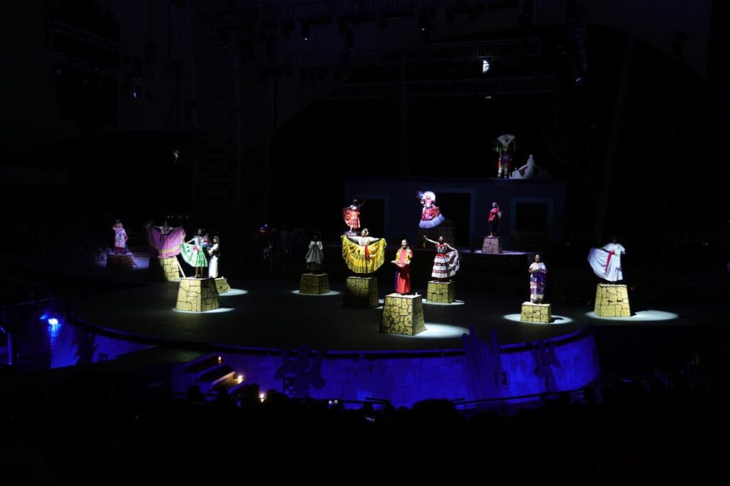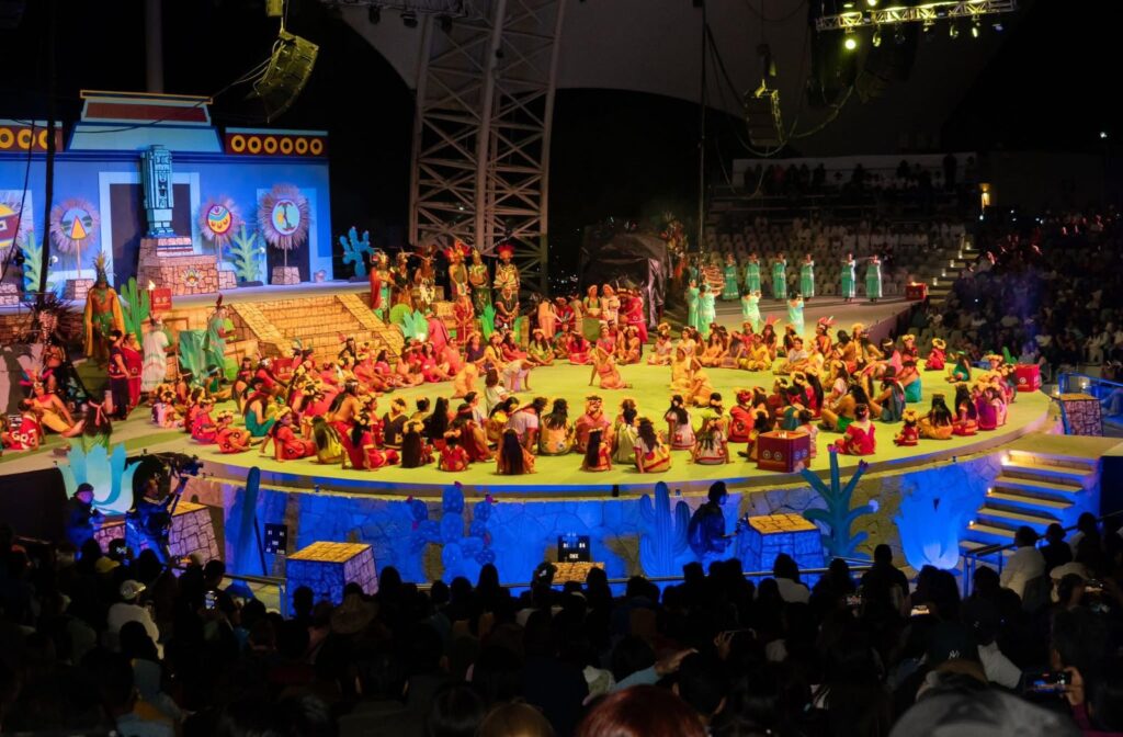 Con más de 300 artistas en escena, música en vivo, danzas tradicionales, escenografías monumentales y vestuarios de épocas llenos de color y simbolismo, esta puesta en escena del Grupo Folklórico de Oaxaca, A.C., retrató con fuerza y sensibilidad cómo nació, se transformó y se consolidó la Guelaguetza.