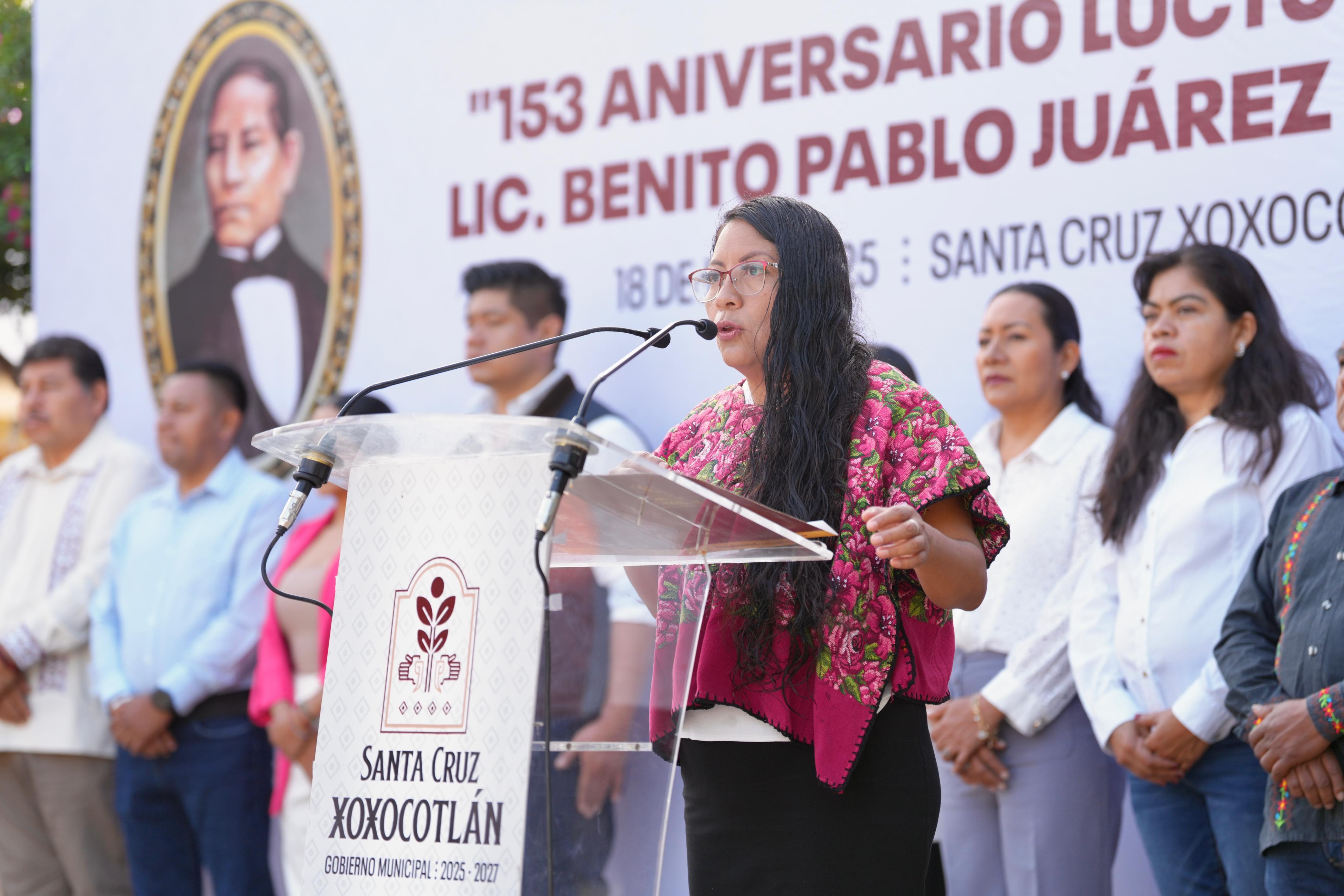 “Nos reunimos para honrar la memoria de uno de los hijos más ilustres de nuestra tierra zapoteca: el Benemérito de las Américas, Don Benito Juárez García. Su legado va más allá de sus palabras. Juárez nos enseñó que no hay desafío imposible cuando se trabaja con rectitud, con convicción y con amor a la patria”, resaltó la edil.