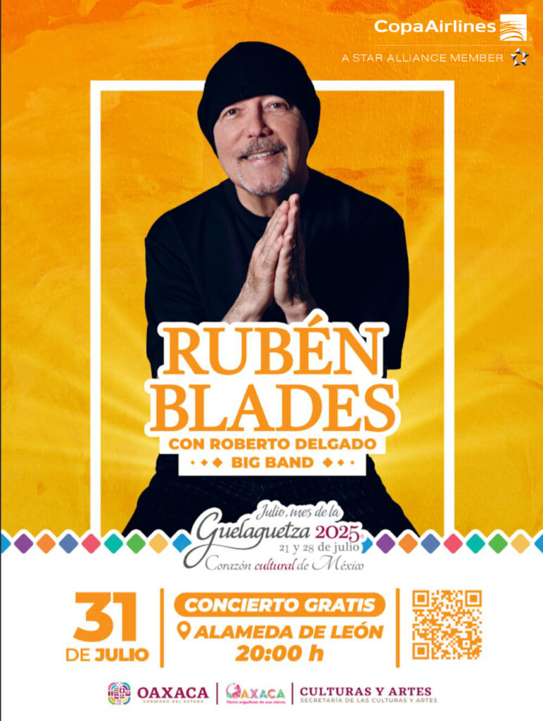 Oaxaca de Juárez, Oax. 30 de julio de 2025.- Con motivo del concierto del cantautor panameño Rubén Blades, en compañía de Roberto Delgado Big Band; la Policía Vial Estatal implementará un operativo especial este jueves 31 de julio en el Centro Histórico de Oaxaca; con el objetivo de preservar la seguridad peatonal y vehicular, así como agilizar la movilidad en la zona.