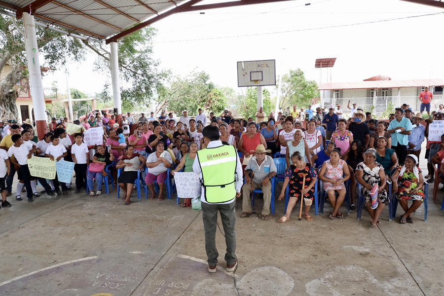 Región Costa, Oax. 27 de junio de 2025.- Al recorrer las agencias Lo de Mejía, Lo de Candela y Mancuernas pertenecientes a Santiago Pinotepa Nacional, el Gobernador Salomón Jara Cruz garantizó a la población que su administración les apoyará en todo momento para la reconstrucción de la infraestructura afectada por el huracán Erick.
