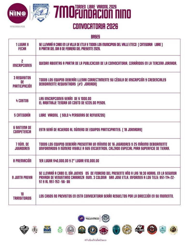 Como parte de su compromiso con el desarrollo comunitario, la Fundación Nino se sumó como patrocinador oficial de la 6ª Copa Veteranos 2026 en el Valle Eteco, consolidando su respaldo a espacios que promueven la unidad y la convivencia a través del deporte.