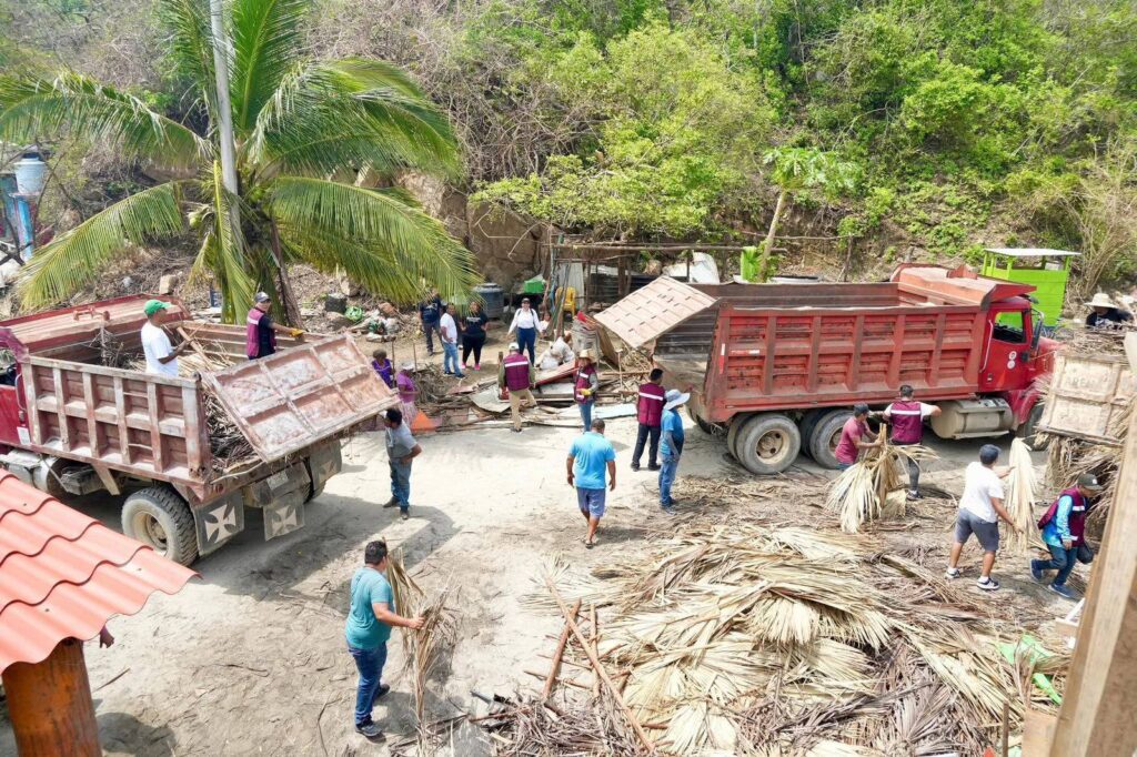 Aunado a ello, se realizaron acciones de limpieza los días 23 y 24 de junio en Santiago Pinotepa Nacional, en las localidades de Banco de Oro y Playa Guadalupe. Asimismo, en Corralero, se removieron 23 toneladas de escombros con 2 camiones y 2 retroexcavadoras; en Mariano Matamoros fueron 8 toneladas con 1 camión y 1 retroexcavadora; mientras que, en Paso de la Garrocha, 28 toneladas con 1 camión y 1 retroexcavadora.