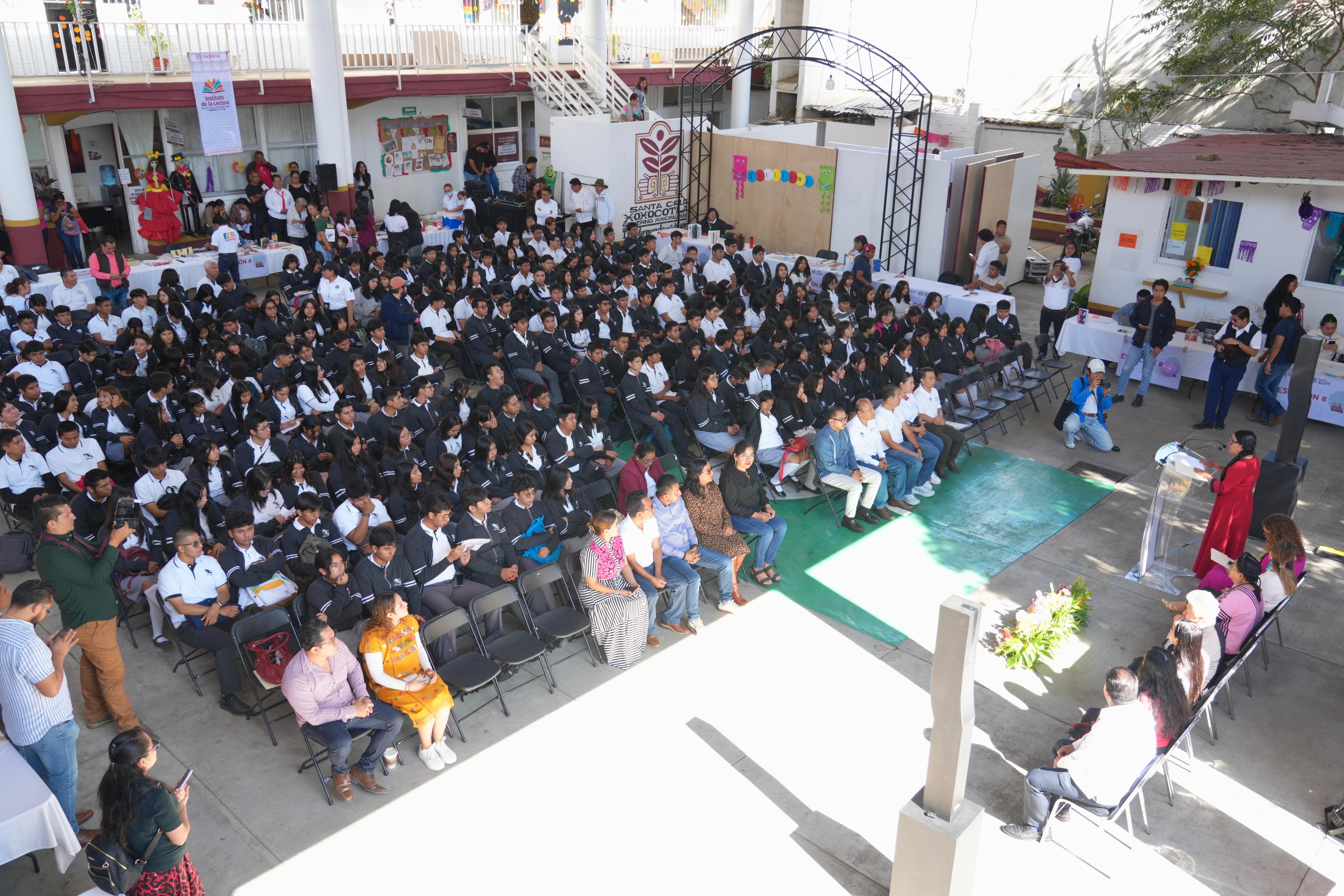 “En Santa Cruz Xoxocotlán seguiremos trabajando para brindar más espacios donde la cultura florezca, donde las niñas y los niños crezcan con oportunidades y donde soñar siga siendo parte de nuestra forma de vivir”, destacó Benítez Zárate ante estudiantes del CECyTEO Plantel 29 de la agencia municipal de Esquipulas.