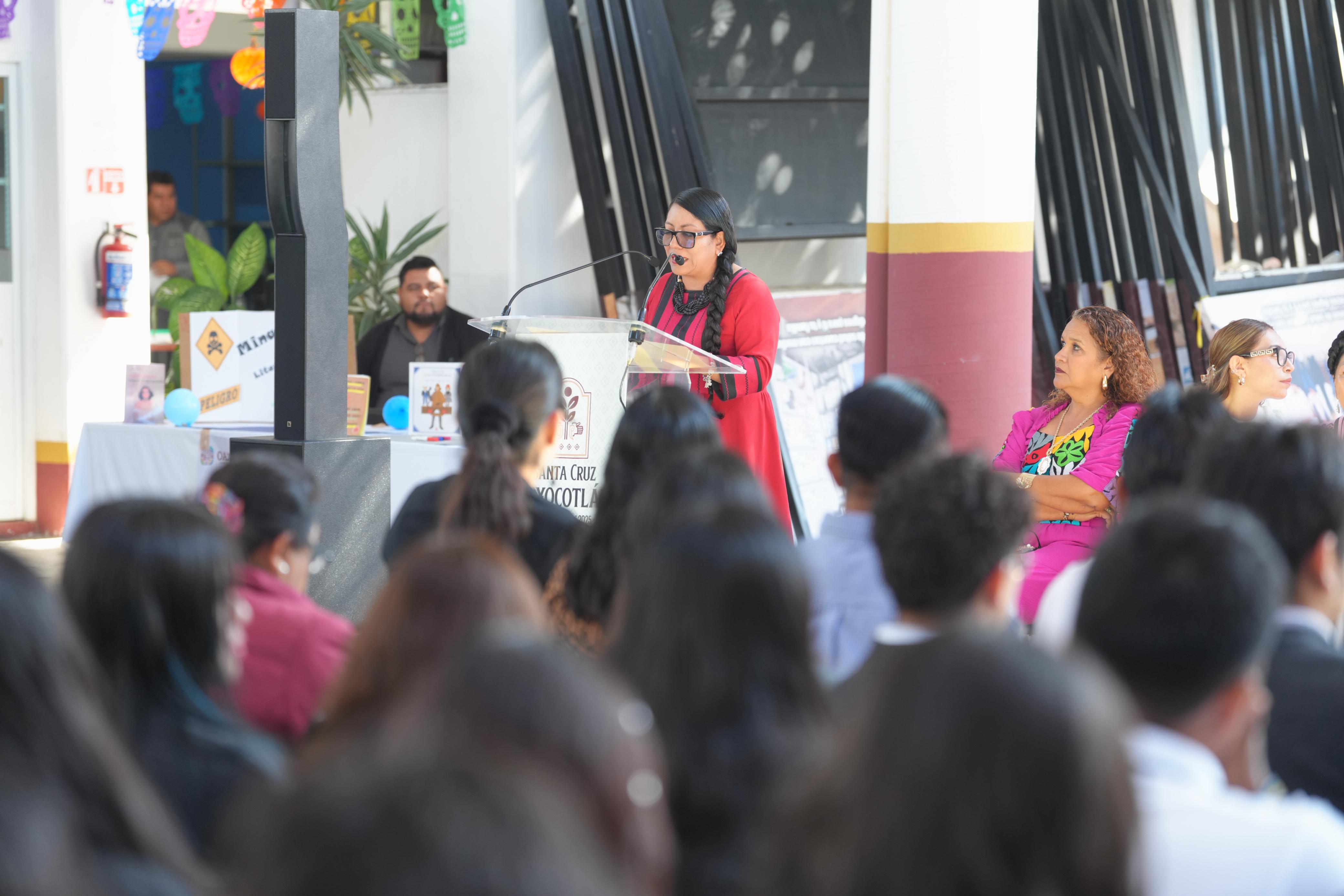 El evento también contó con la presencia de las y los titulares del CECyTEO, Blanca Martínez Guzmán; de la Policía Vial, Toribio López Sánchez; de Fomento a la Lectura, Félix Tonatiuh Huerta Sánchez; del IEBO, Francisco Salinas Huergo, y, en representación del Instituto de Lenguas Indígenas de Oaxaca, Ariana Osorio.
